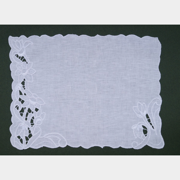 Prezenty / Haft richelieu, brzegi wykończone ząbkami dzierganymi, len