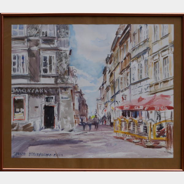 Od wielu  lat tworzy pejzaże  miejskie  przedstawiając w migawkowy sposób pełne gwaru i ruchu ulice miast.