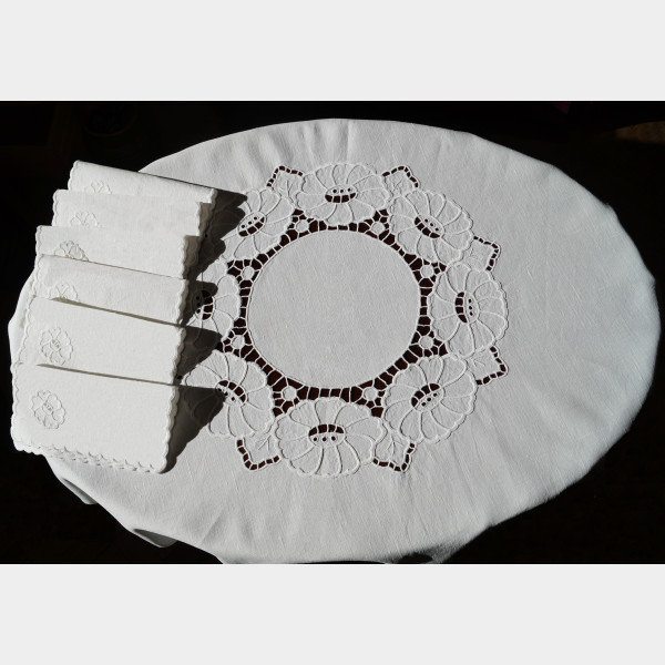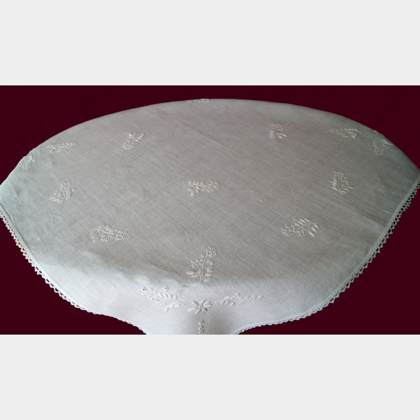Prezenty / Haft richelieu, brzeg wykończony koronką szydełową,len