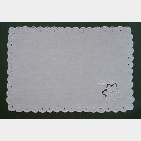 Prezenty / Haft richelieu, brzegi wykończone ząbkami dzierganymi, len