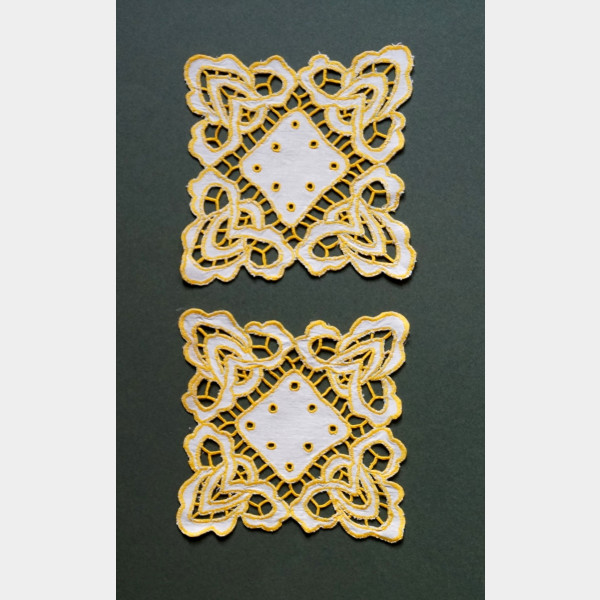 Prezenty / Haft richelieu, haft żołtą nicią, len